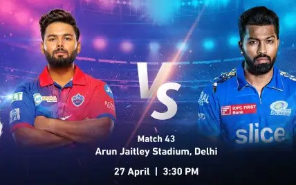 आईपीएल 2024 के 43वें मैच में आज दिल्ली कैपिटल्स और मुंबई इंडियंस होगी आमने- सामने